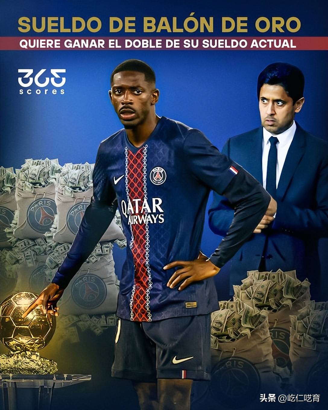 《队报》在近日的报道,估计会令所有球迷感到意外--为了留住25年度的金球&世足先生,巴黎甚至为登贝莱开出了年薪3000万欧元的续约合同(约合周薪57.69万欧元、折算为英镑约为50.1153万)。