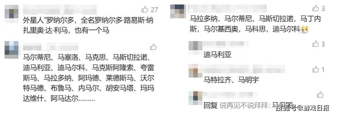 事实上,随着春节临近,在《FC足球世界》版本更新前,就有不少玩家和球迷已经在讨论名字中带“马”字的球星。知名KOL“金猴聊球”甚至汇总出了游戏中高能力值、带马的58名球员,包含前场“马”19人、中场“马”19人、后场“马”18人以及2位门将“马”。