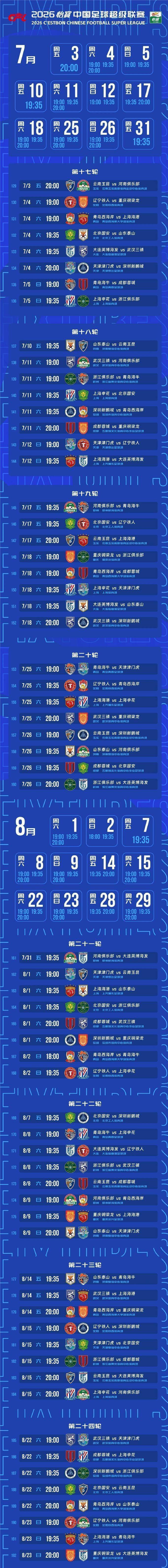 尤其值得一提的是,在2026年美加墨世界杯如火如荼进行期间(6月11日至7月19日),中超联赛第三阶段(第16轮至第26轮)的比赛将继续进行(6月26日至9月6日)。这意味着,球迷们在欣赏世界杯精彩赛事的同时,也能持续关注国内联赛的动态,见证中超赛场上的激情与荣耀。这种安排在中国足球职业联赛的历史上实属罕见,以往每逢大赛年份,联赛往往会为国际赛事让路,而今年则打破了这一惯例。