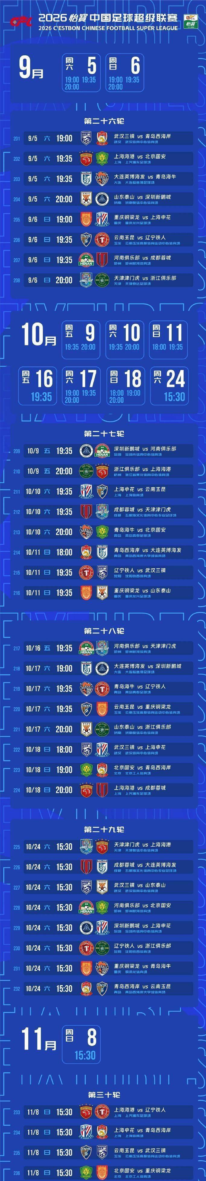2026世界杯赛程,世界杯球队,足球预测,世界杯投注,赛事直播万众瞩目之中,中国足协于2月14日晚正式公布了2026赛季中超联赛的完整赛程,为即将到来的绿茵盛宴拉开了帷幕。新赛季战火将于3月6日点燃,至11月8日方才落下帷幕,赛季跨度长达八个月之久,注定激情澎湃,悬念丛生。