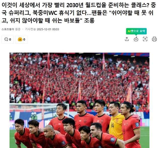 该媒体还大肆报道了明年中超将在世界杯期间照常进行的消息,直言这是一个完全合理的决定,因为中国队一如既往无缘明年世界杯,即使世界杯已经扩军到48支,但中国队还是无缘。可以说,现在韩国媒体也就只能从世界杯的角度挖苦一下中国男足了。(老邱)返回搜狐,查看更多